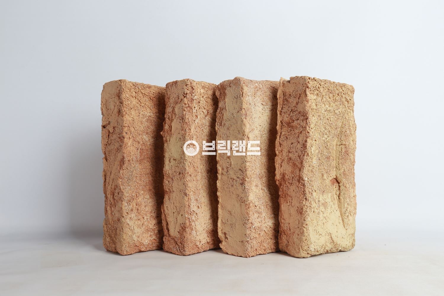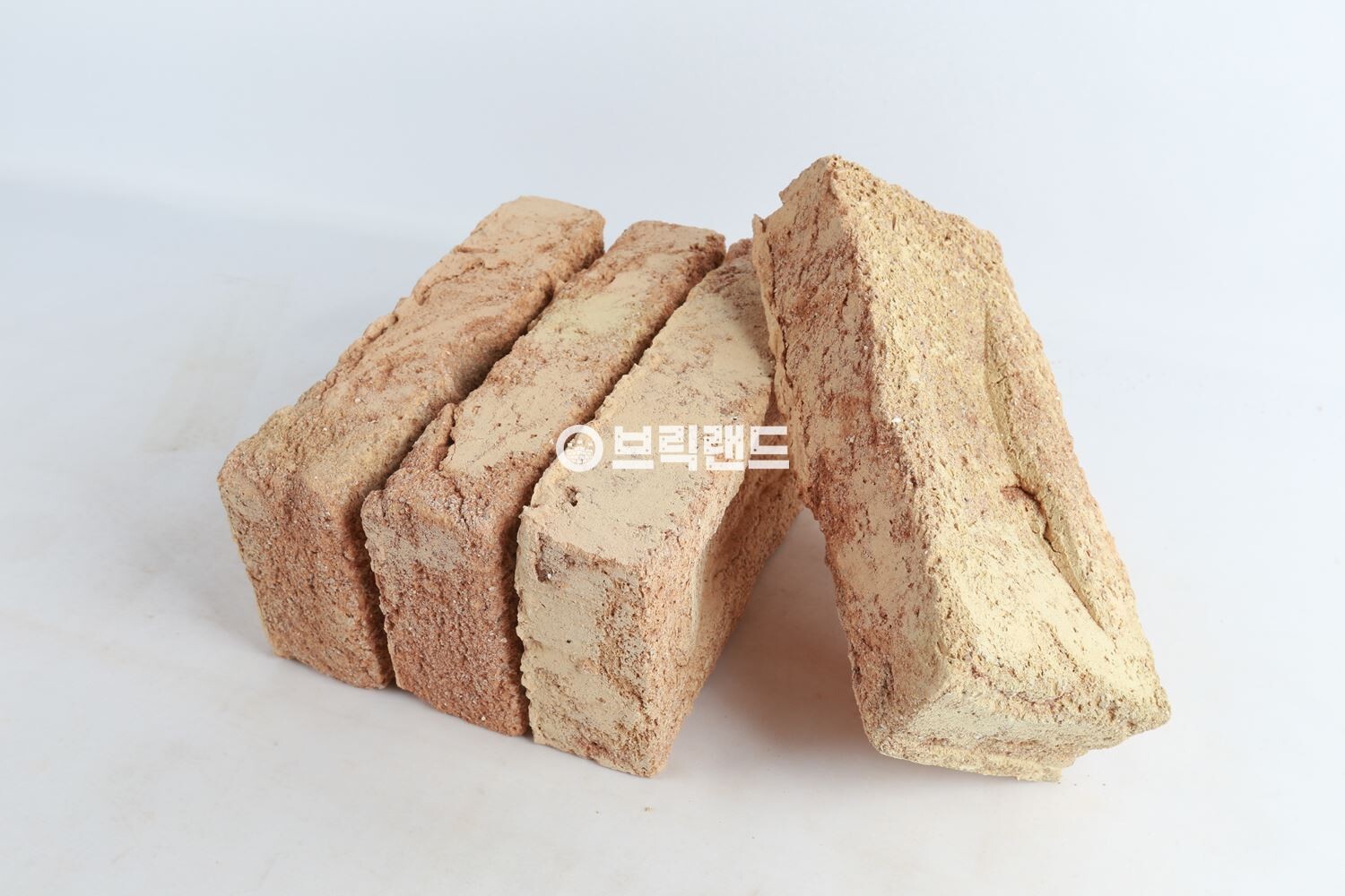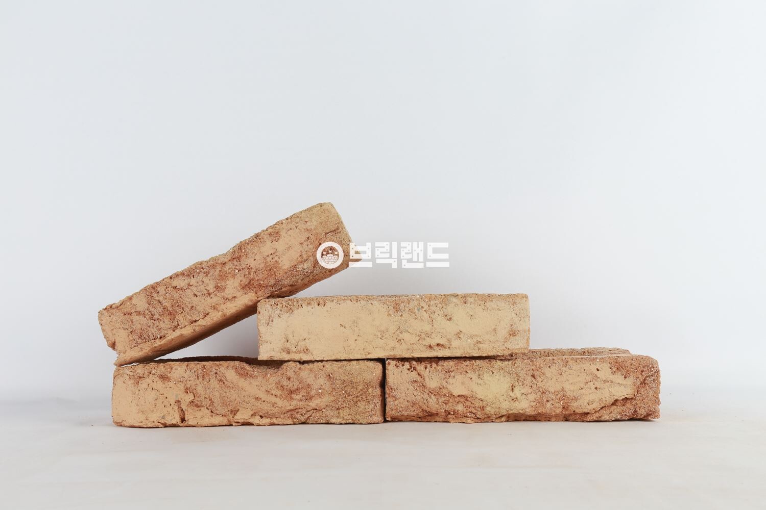섬세한 황금색과 분홍색 음영의 차분한 색상이 있는 고전적인 노란색-빨간색 톤의 수작업 및 분사 벽돌입니다.