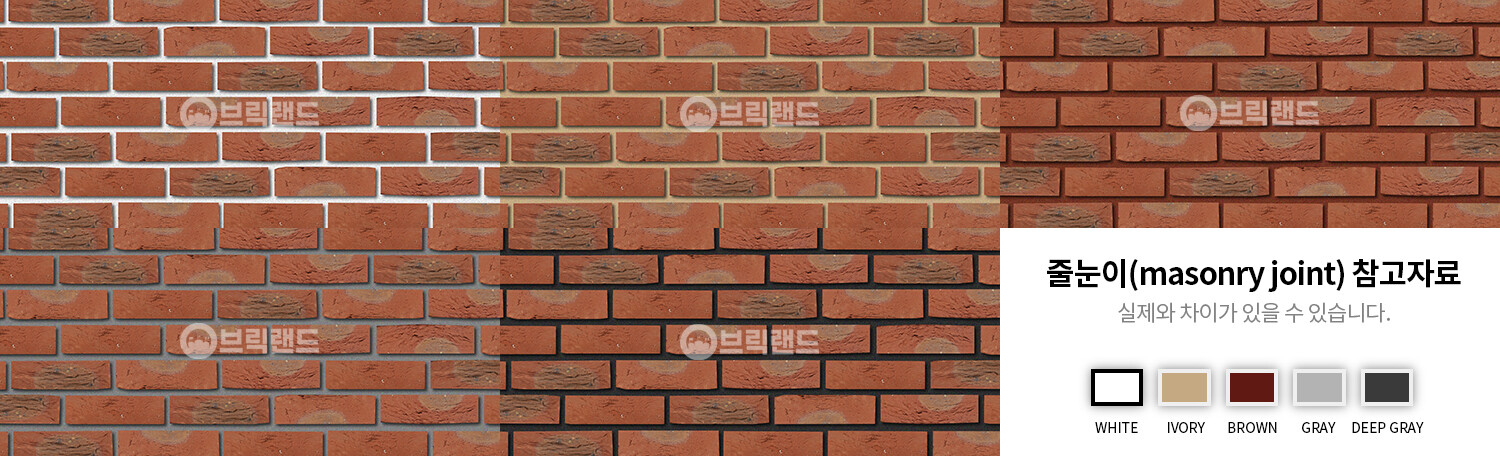 헤밀턴 오렌지 멀티의 줄눈에 따른 조적느낌은 브릭랜드 매장 바깥쪽에 실질 시공을 하여 선보이고 있습니다.