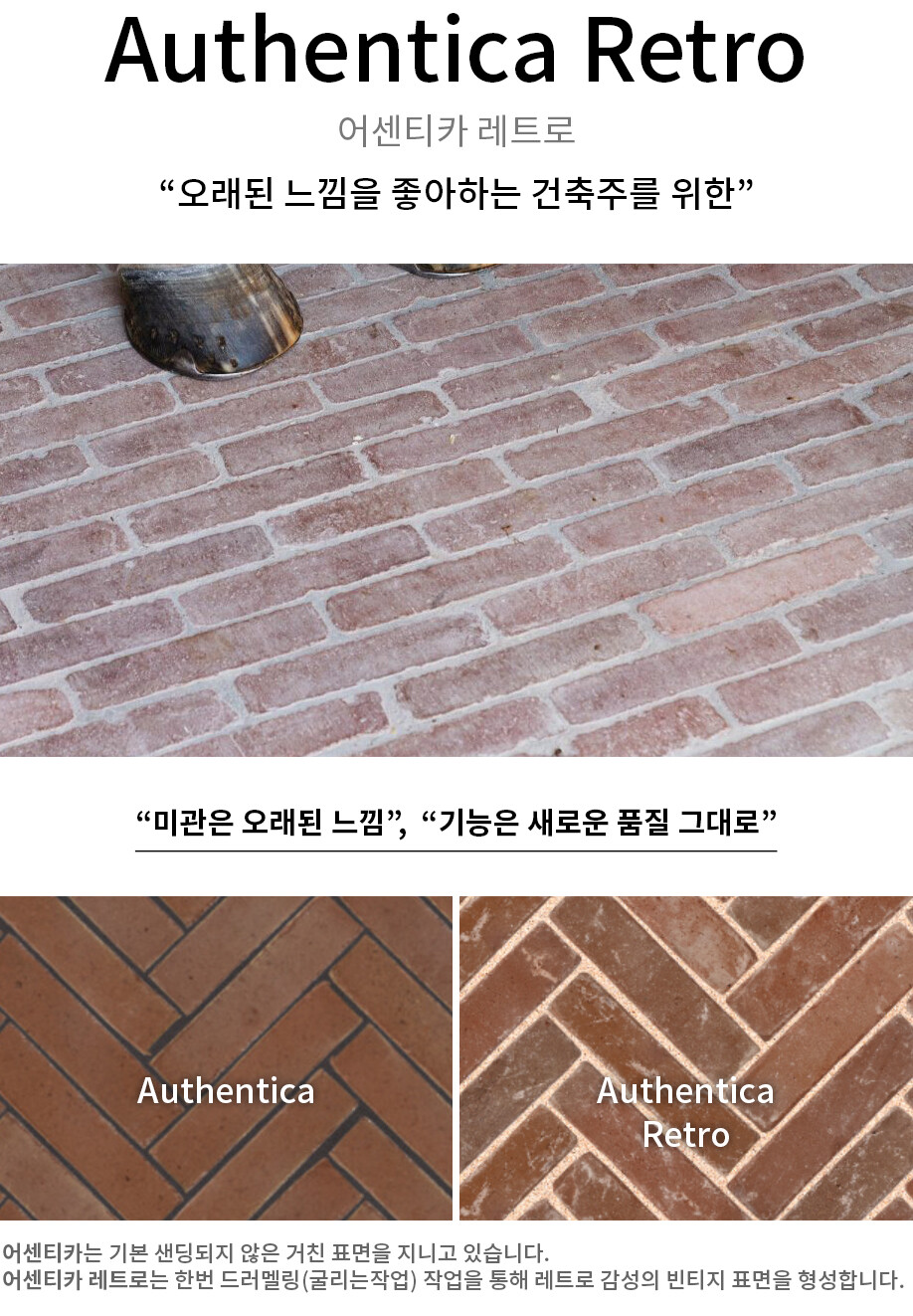 어센티가 레트로 브론즈(Authentica Retro Bronze) 바닥벽돌의 색상은 황갈색을 띄고 있습니다.