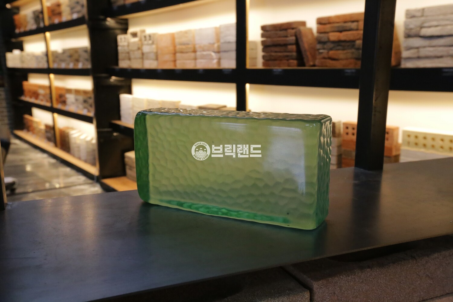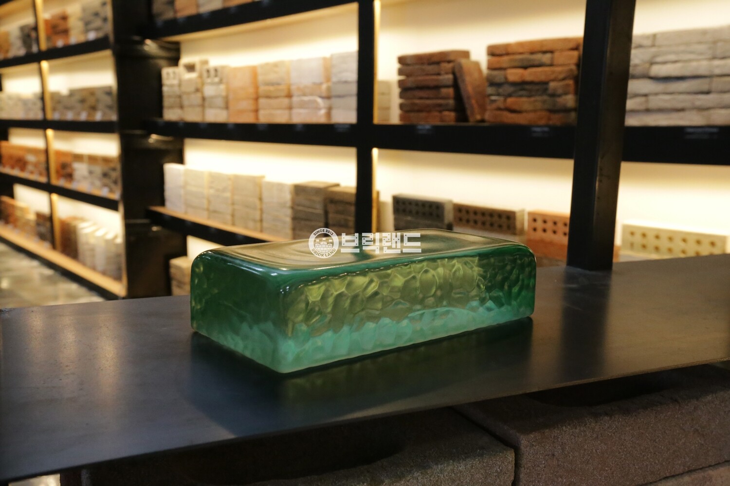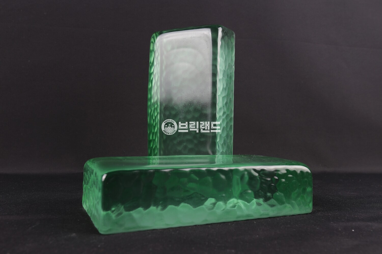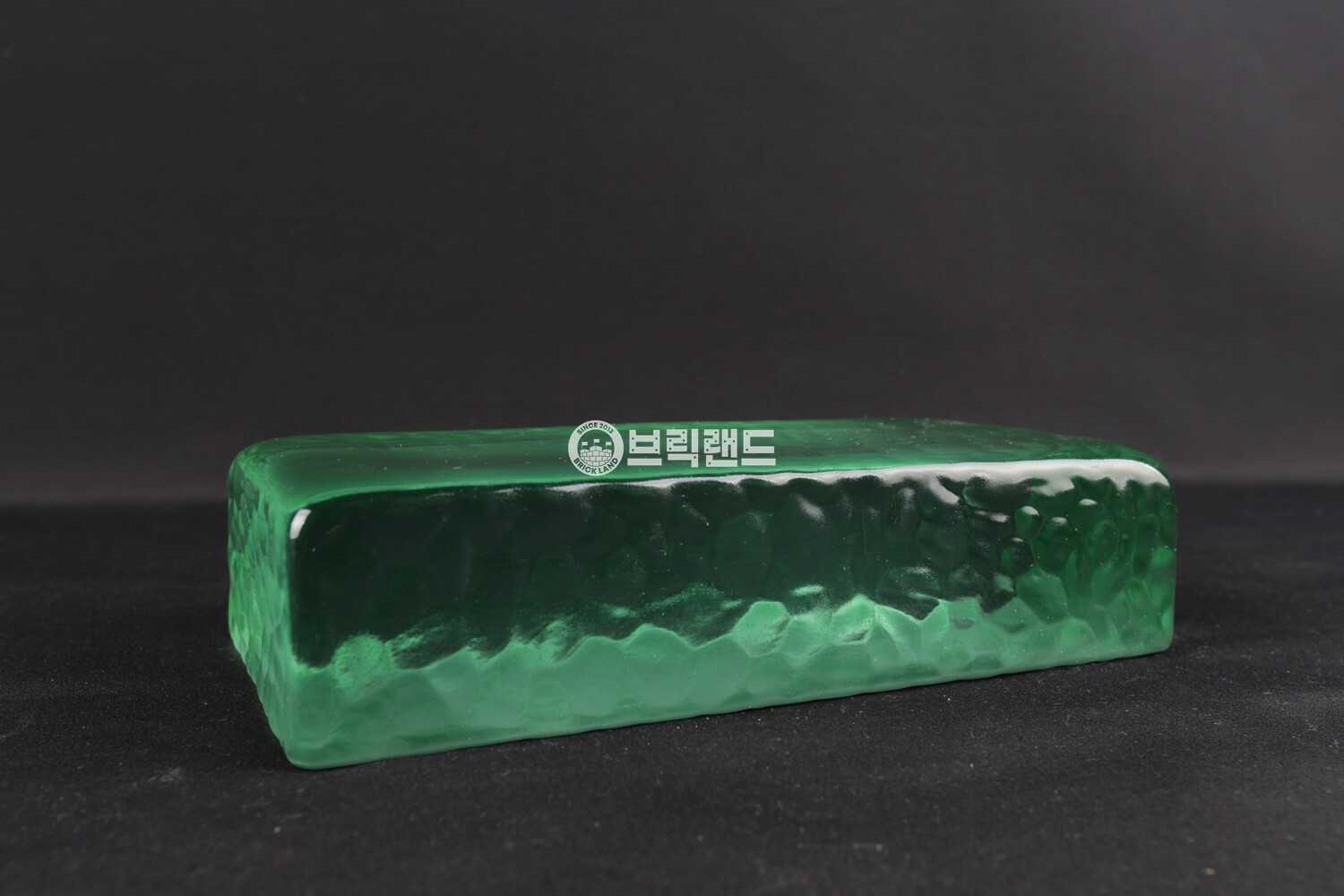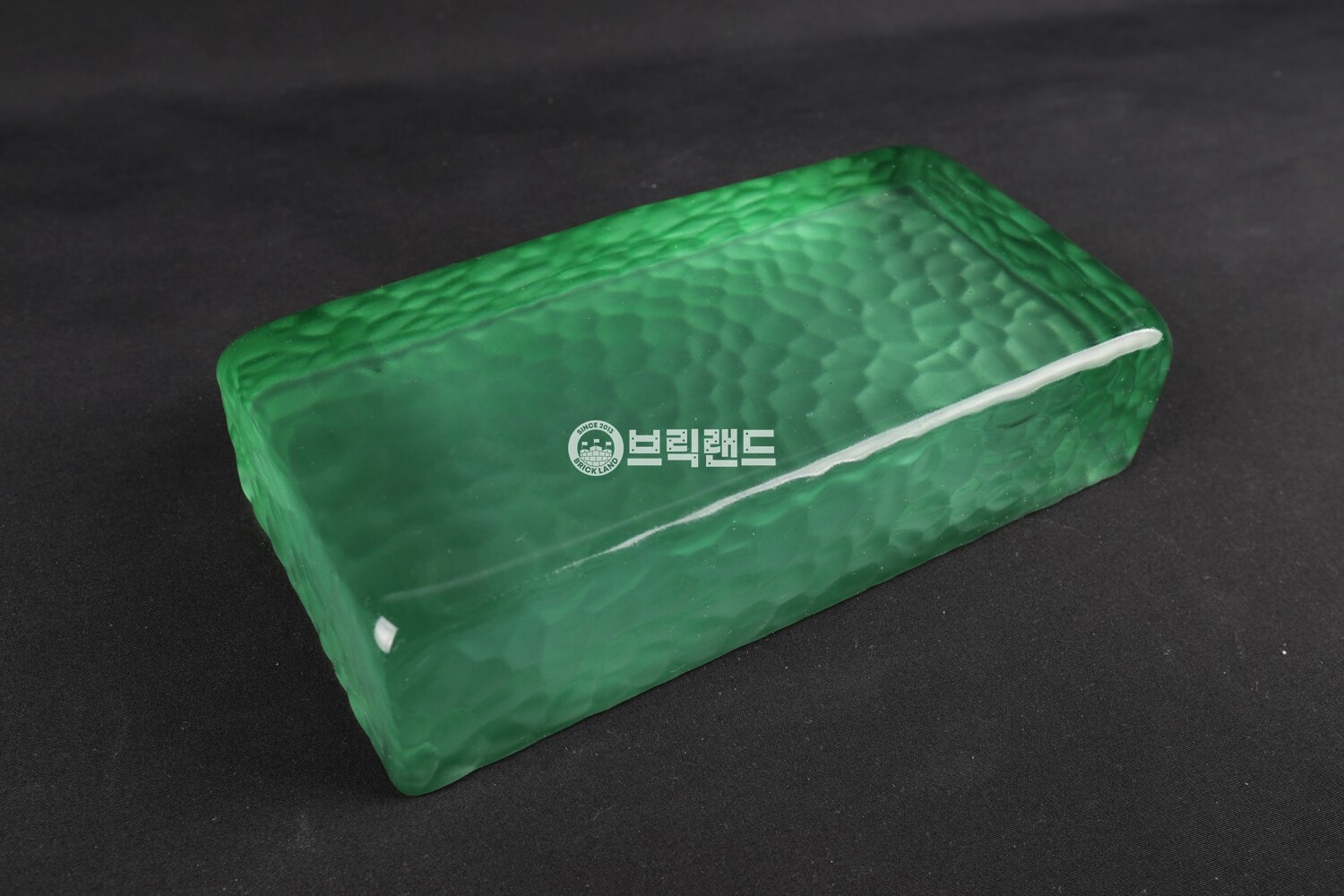 기본 라운드 형태에 스픈컷(조각칼로 파낸 듯한) 한듯 한 질감이 있는 유리벽돌입니다.