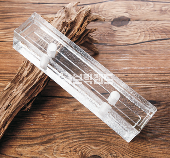 모서리가 직선형태를 띄고 있으면서 유리의 내추럴한 질감이 살아 있는 유리벽돌입니다.