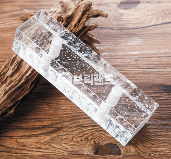 면처리 된 폴리시 모델 속에 비눗방울 같은 기포가 가미되어 은은하게 시선을 사로 잡는 유리벽돌입니다.