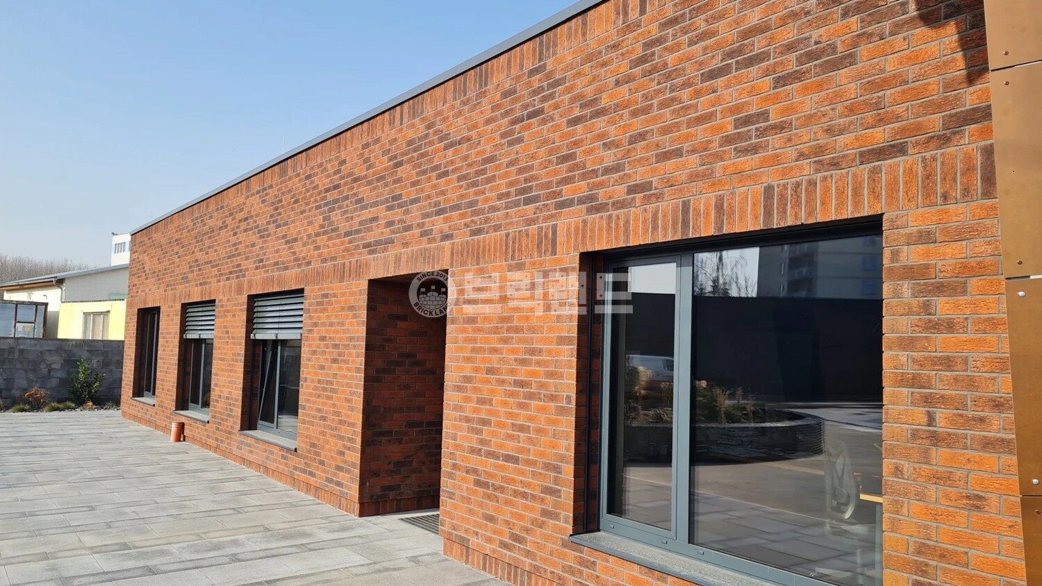 거친 클링커의 붉은 색조가 강렬한 검은 그림자에 감싸여 있습니다.