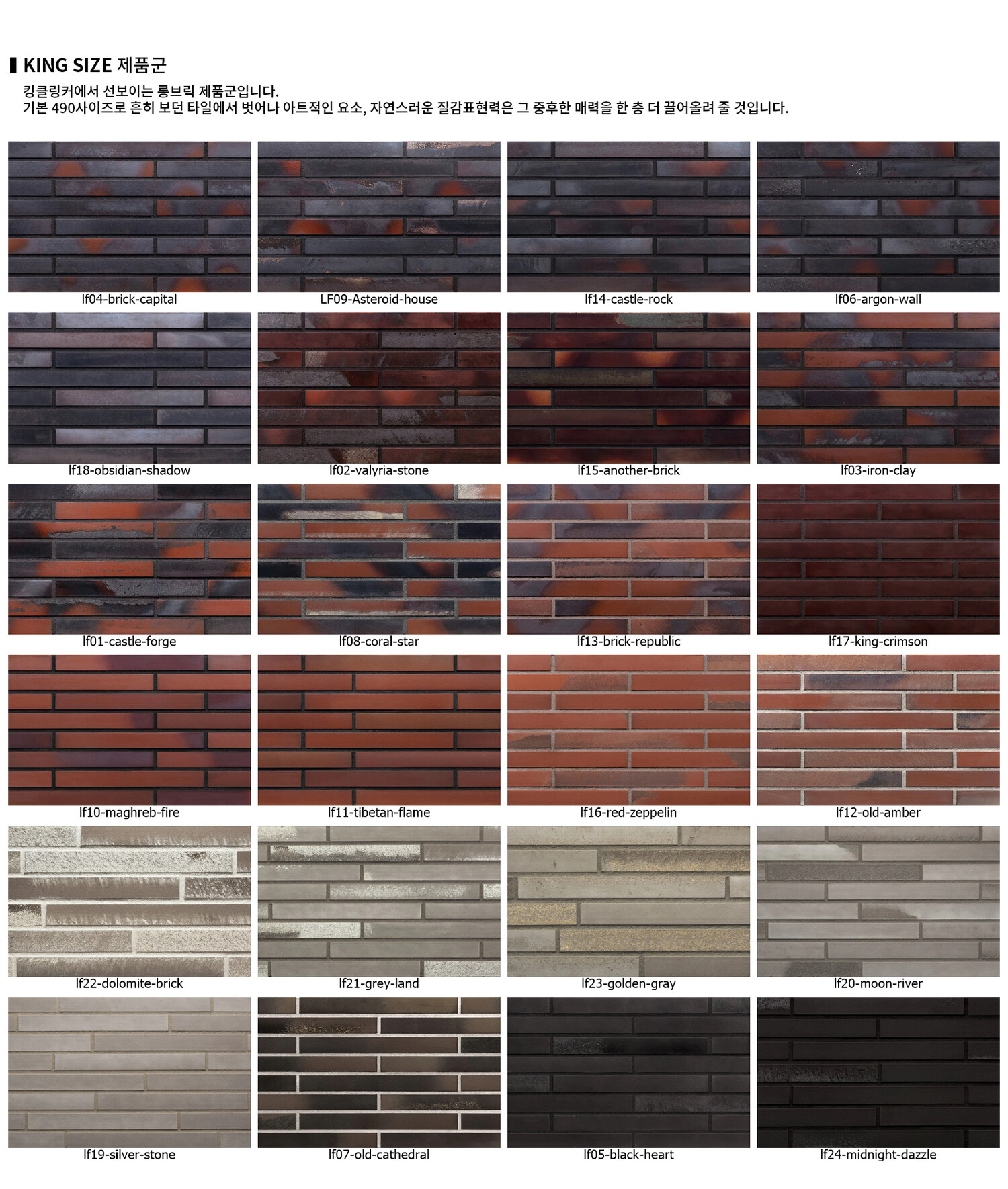 캐슬 포지(Castle Forge)는 붉은색 계열에 검은색 줄무늬가 군데군데 섞여 산화된 금속 색조로 이어지는 색상입니다.