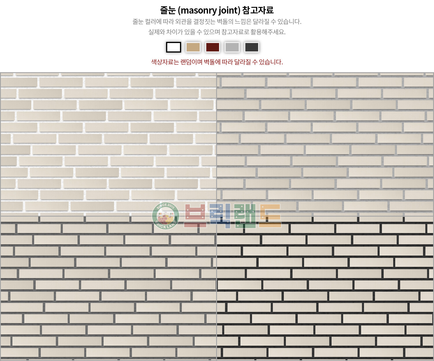 흰색, 회색 계통의 벽돌은 전시장에 방문하셔서 육안으로 확인해보시길 권해드립니다.