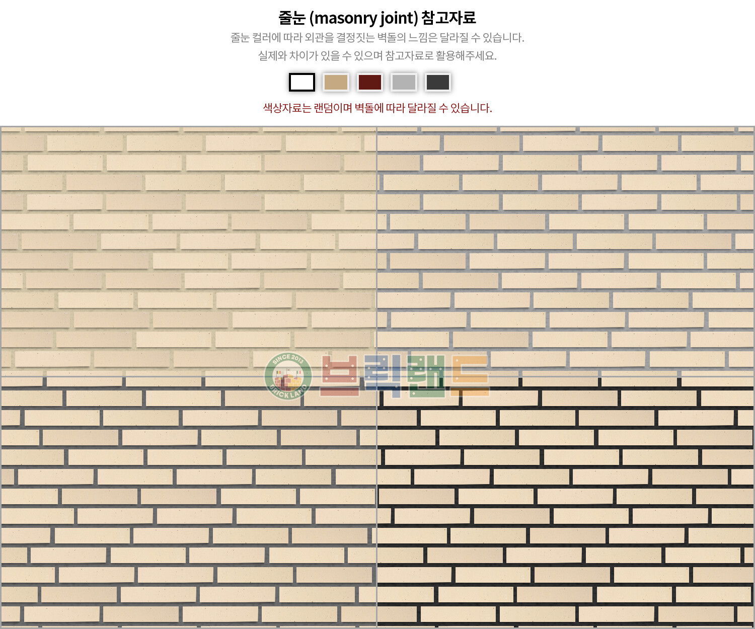 흰색, 회색 계통의 벽돌은 전시장에 방문하셔서 육안으로 확인해보시길 권해드립니다.