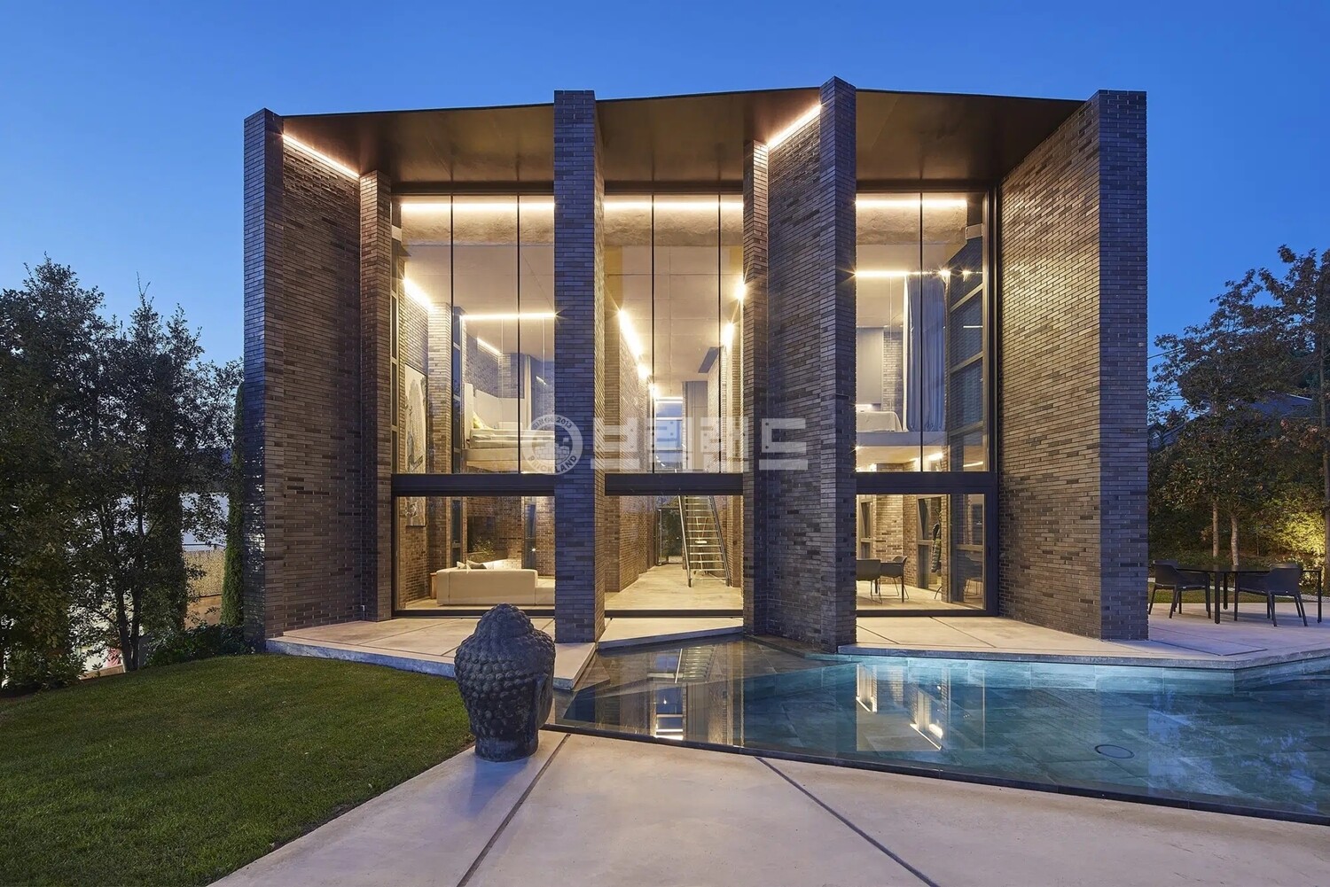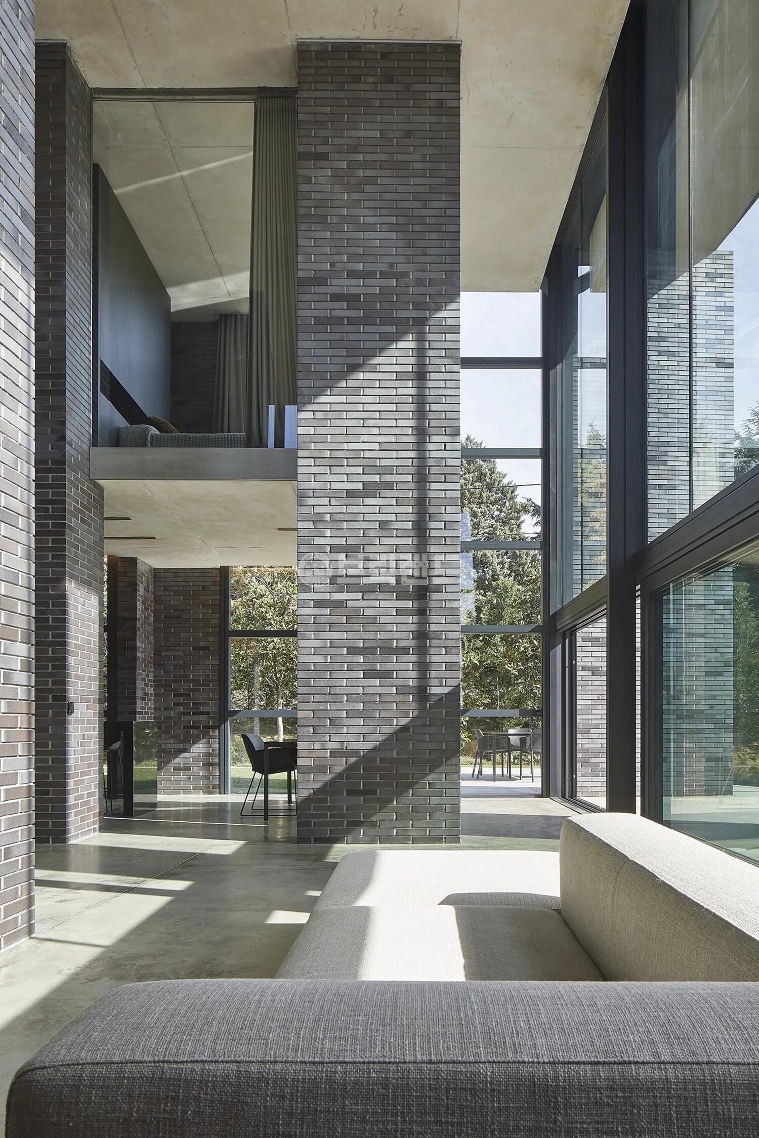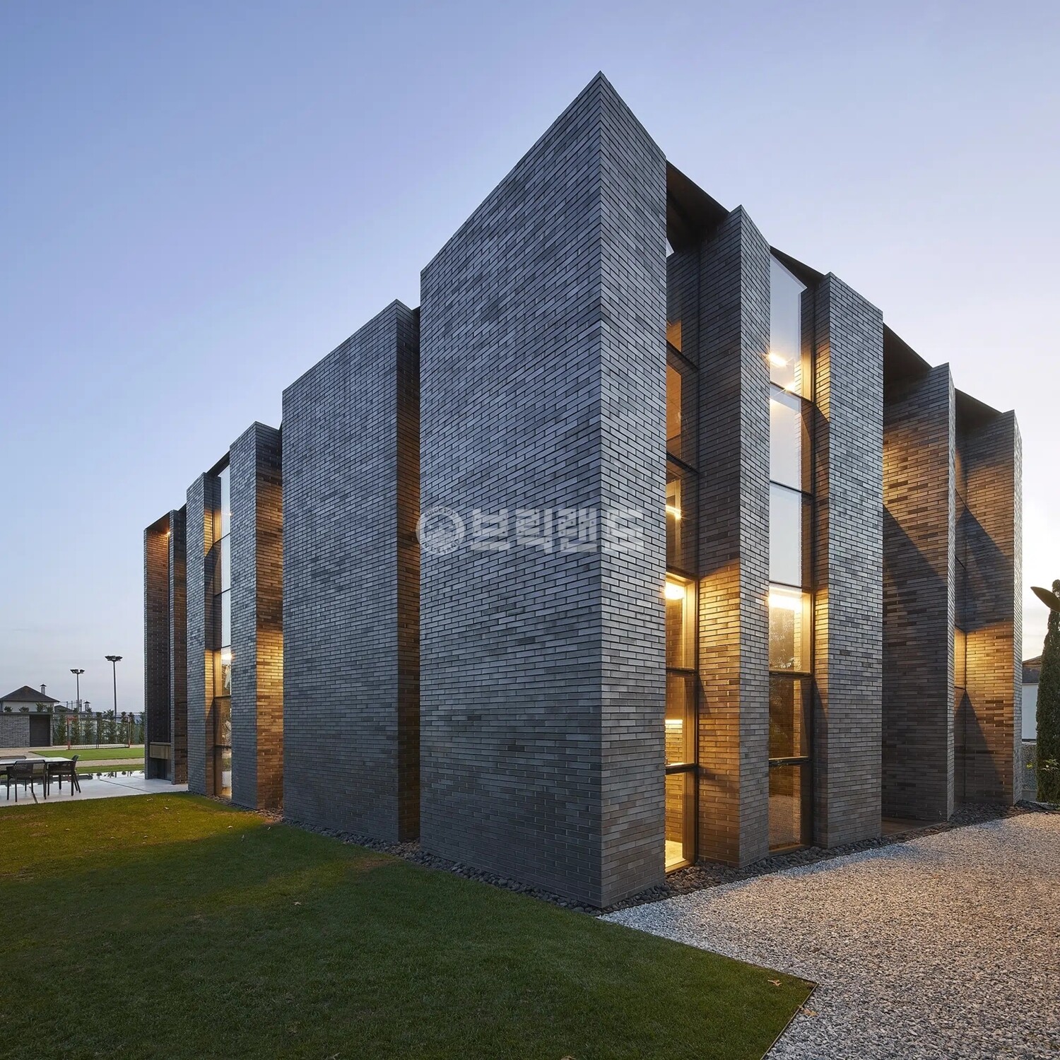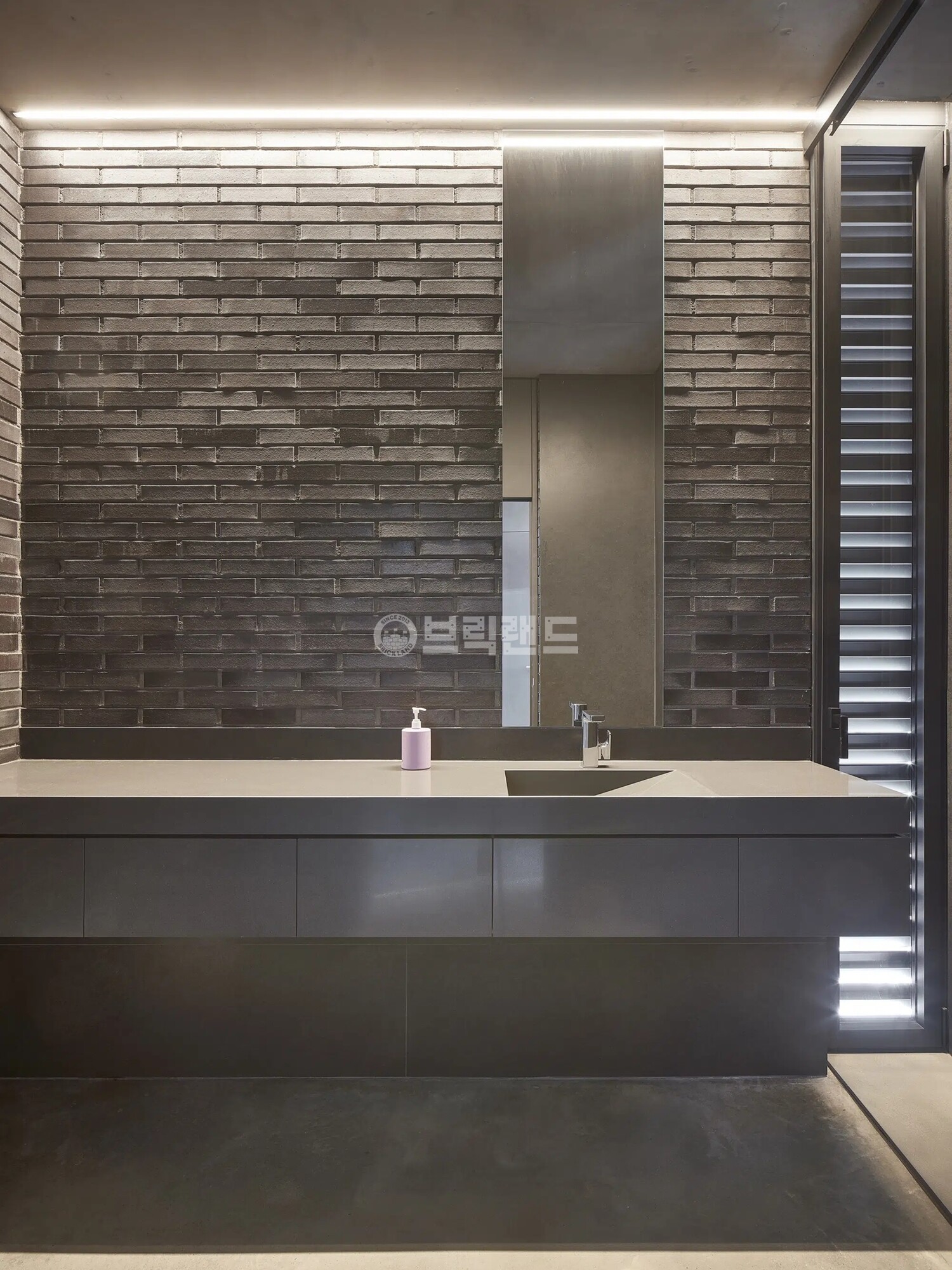 검정벽돌 내에 은빛깔의 광은 빛을 받아 입체적인 흑색의 벽면을 완성시켜줍니다.