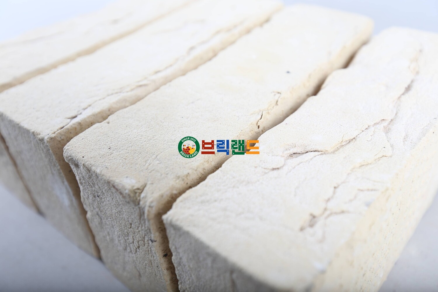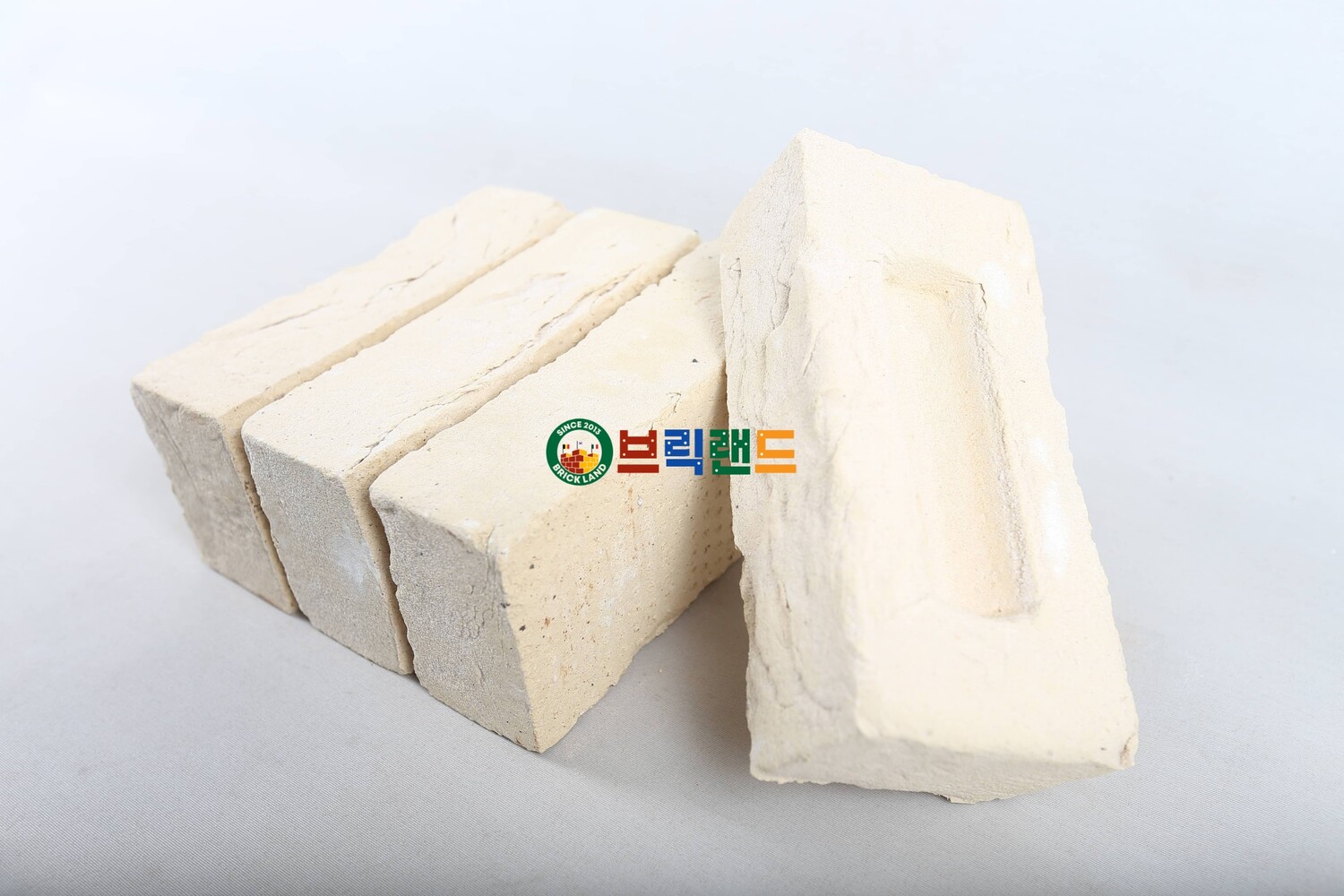 약간 뉘앙스가 있는 상아빛 흰색의 불규칙한 가장자리가 있는 손으로 주조한 벽돌입니다.